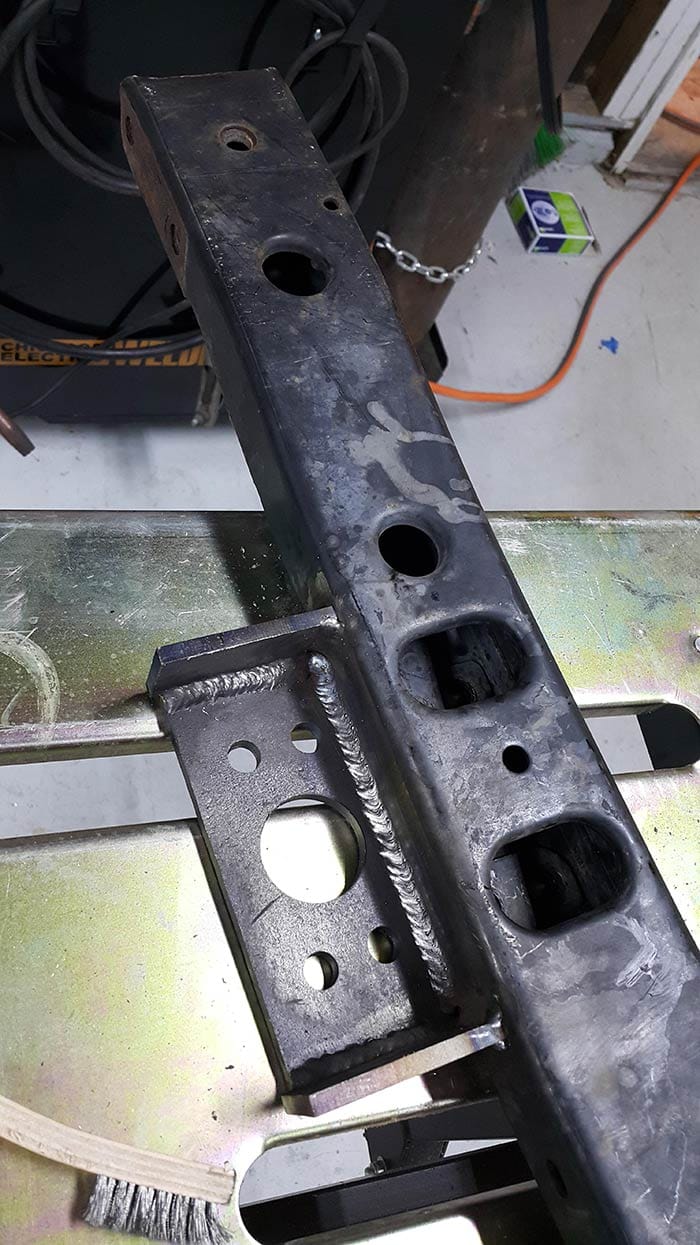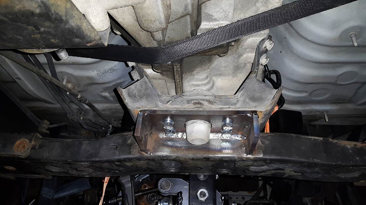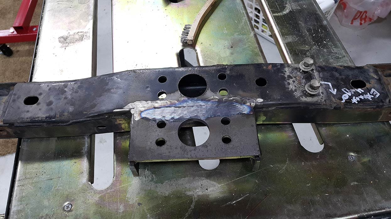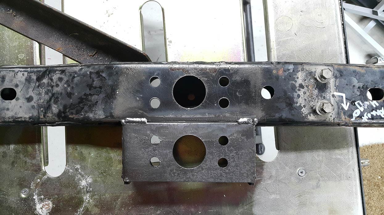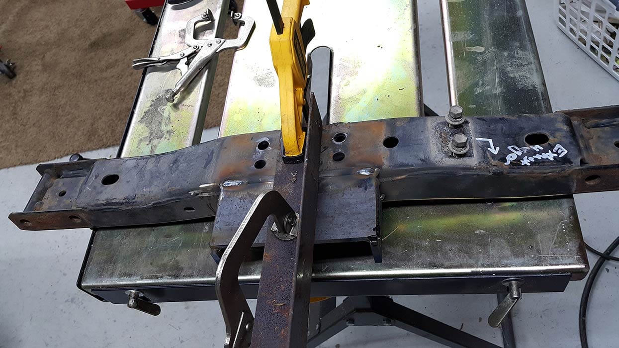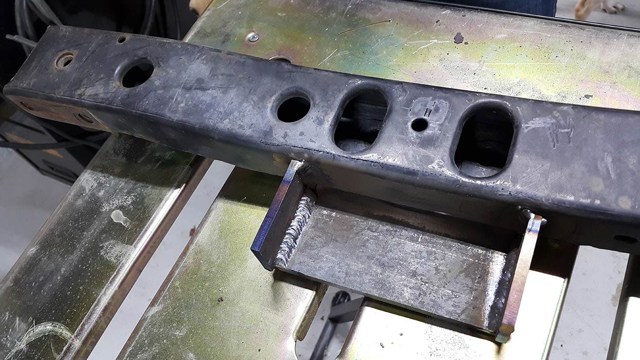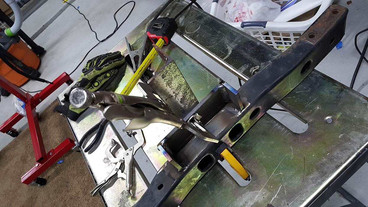 Since the Tacupra is receiving the 2JZ inline-6 engine from the Toyota Supra, I had to shorten the driveshaft. The 2JZ is longer than the Tacoma’s original V6, so the make room, I cut the original driveshaft and pushed the transmission back. This meant I had to fabricate a whole new transmission crossmember.