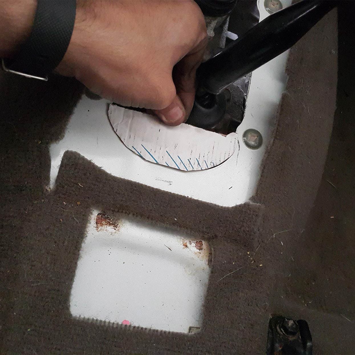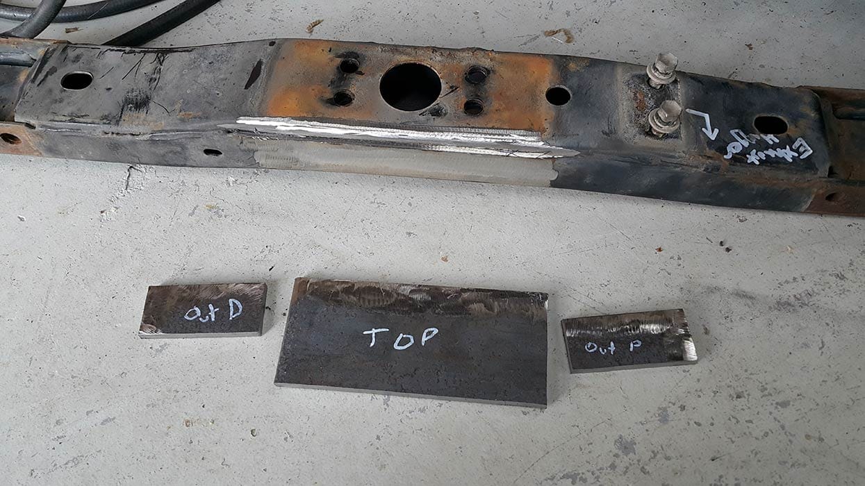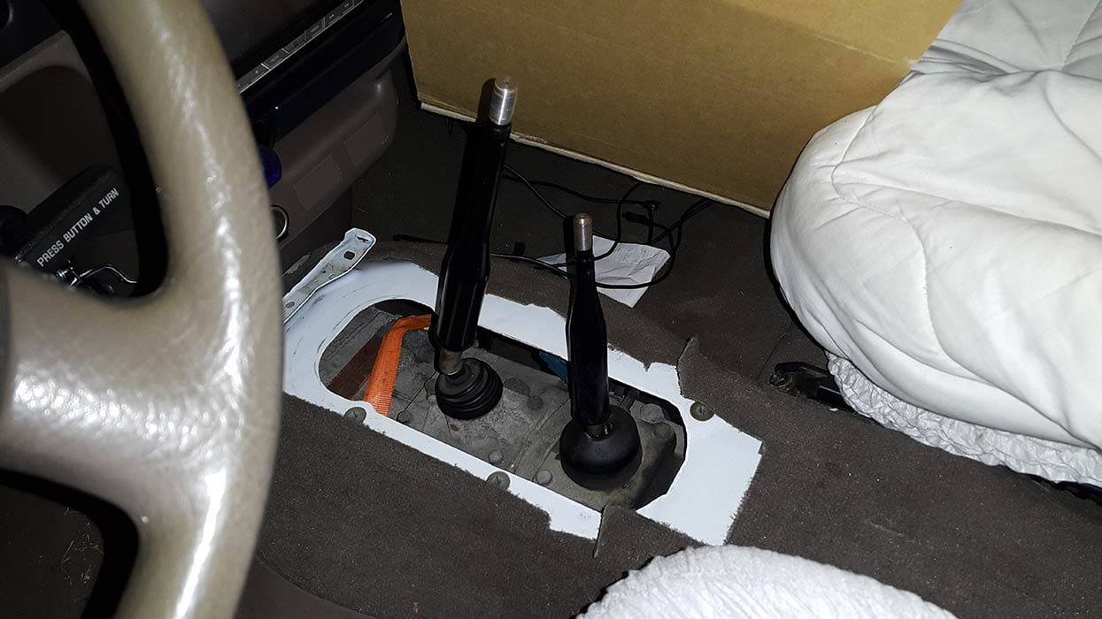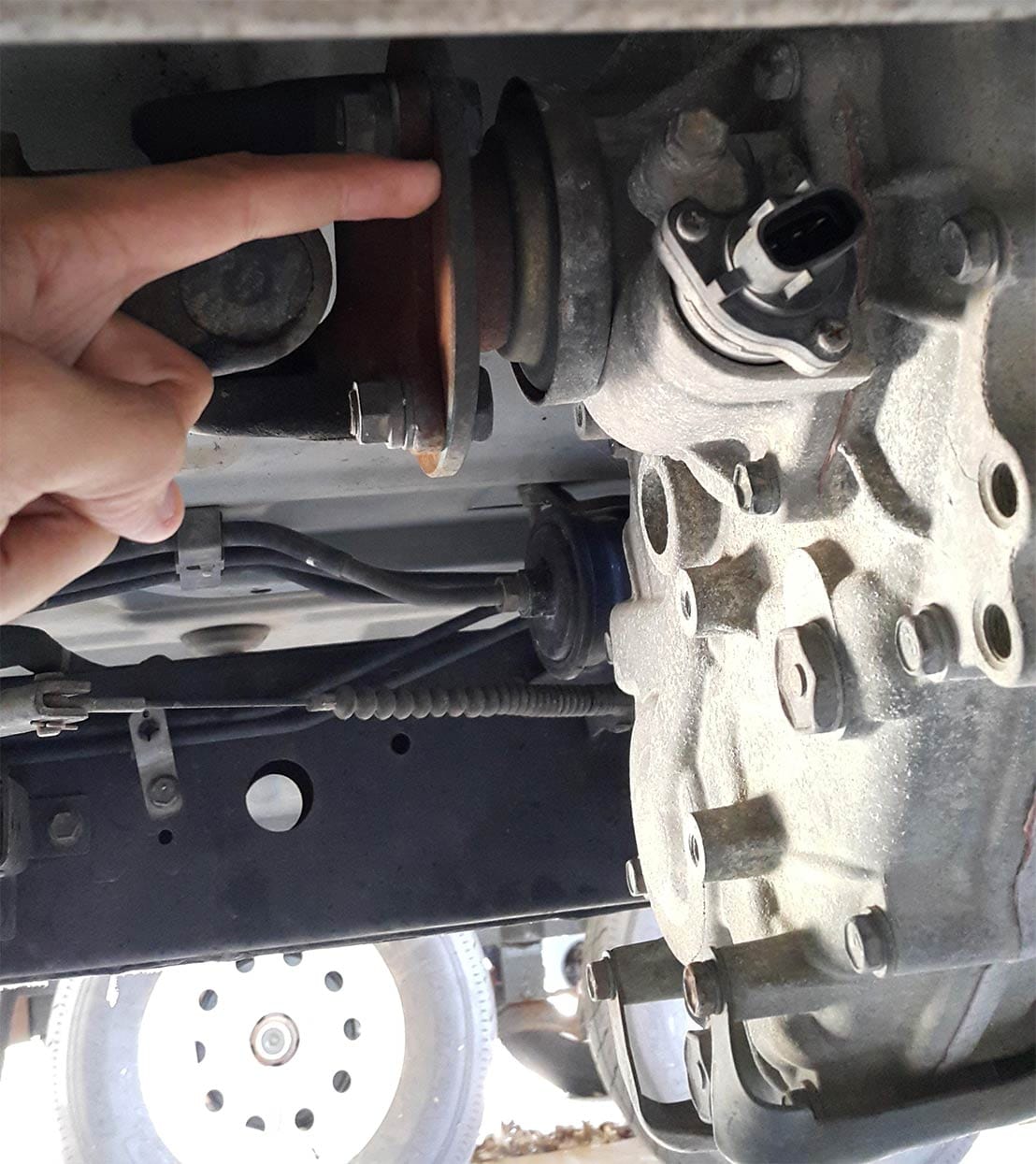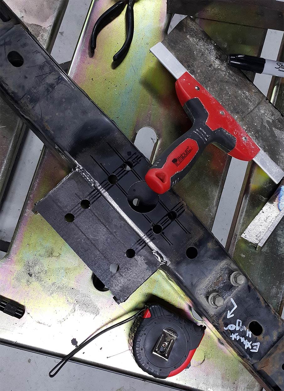 Since the Tacupra is receiving the 2JZ inline-6 engine from the Toyota Supra, I had to shorten the driveshaft. The 2JZ is longer than the Tacoma’s original V6, so the make room, I cut the original driveshaft and pushed the transmission back. This meant I had to fabricate a whole new transmission crossmember.